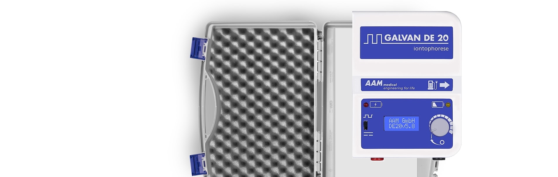 Das DE20 von AAM ist geeignet für die Iontophorese bei starkem Schwitzen / Hyperhidrose und die Medikamenteniontophorese.